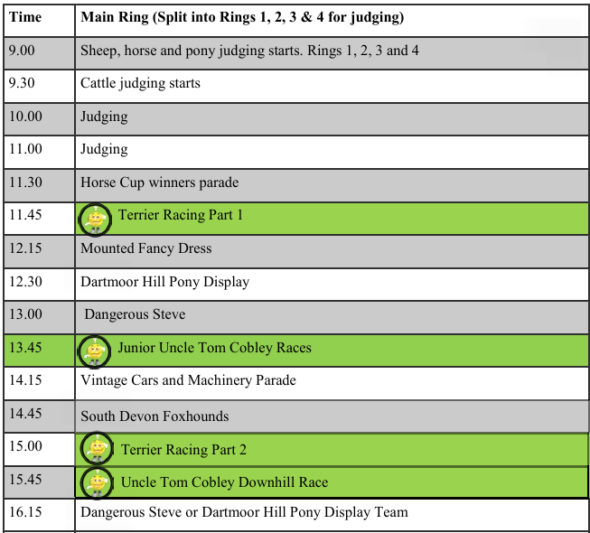 We’ll once again welcome The Dartmoor Hill Pony Display Team, Canine Capers Dog Agility Display and the ever-popular Terrier Racing to entertain us at the Fair! Look out for Egg Tossing, new to the fair this year, then the Bale Tossing competition followed by the Tug-O'-War at the end of the day to round things off.