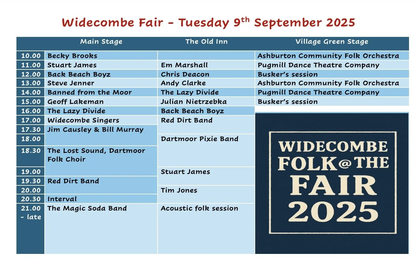 The full line-up of events and exhibits for Widecombe Fair 2025 is now confirmed! There will be a fun mixture of old favourites together with a selection of new items that we’re very excited to introduce. A full day of events including sheep, horse and cattle judging, the fearful Uncle Tom Cobley race and finally the epic Tug-o’-War tournament will keep you entertained from dawn til dusk. As always at the Fair, Uncle Tom Cobley on his grey mare and his merry entourage dressed in their usual rag-and-bone tweeds will be a common sight.